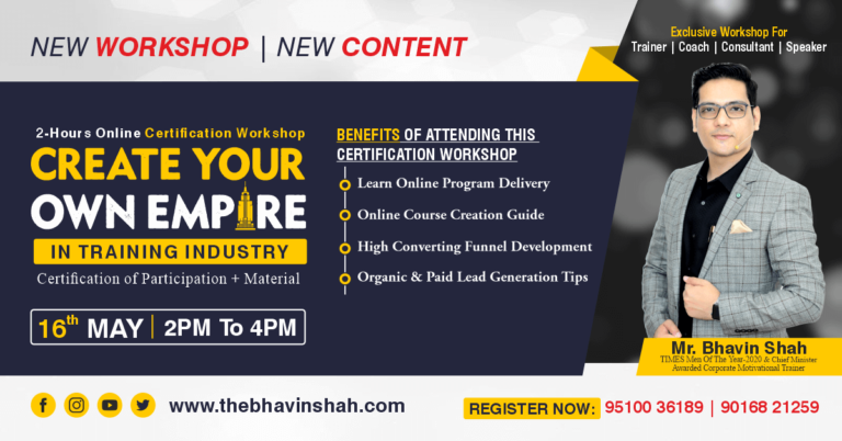 “Be Highly Paid Trainer” – Webinar By Mr. Bhavin Shah – 28th September-9.00pm