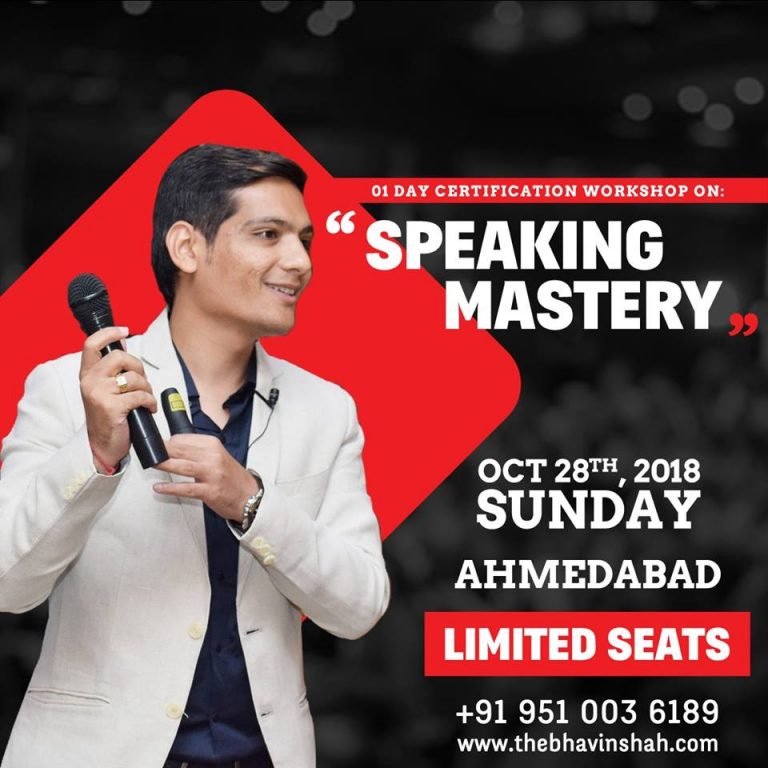 This time at Grand Hyatt, Ahmedabad on 02 September,2018 (Sunday). Join an exclusive workshop on “SPEAKING MASTERY” – 01 day certification program by Award Winning Motivational Speaker & Internationally recognized Corporate Trainer, Mr. Bhavin Shah. One Full Day Signature Program To Learn extraordinary public speaking…