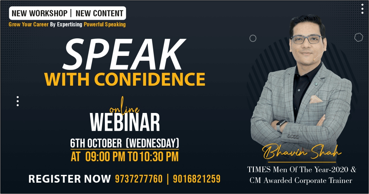 EVENTS Speak With Confidence – Online Certification Workshop by Mr. Bhavin Shah – 6th October – 9 PM Bhavin Shah October 5, 2021