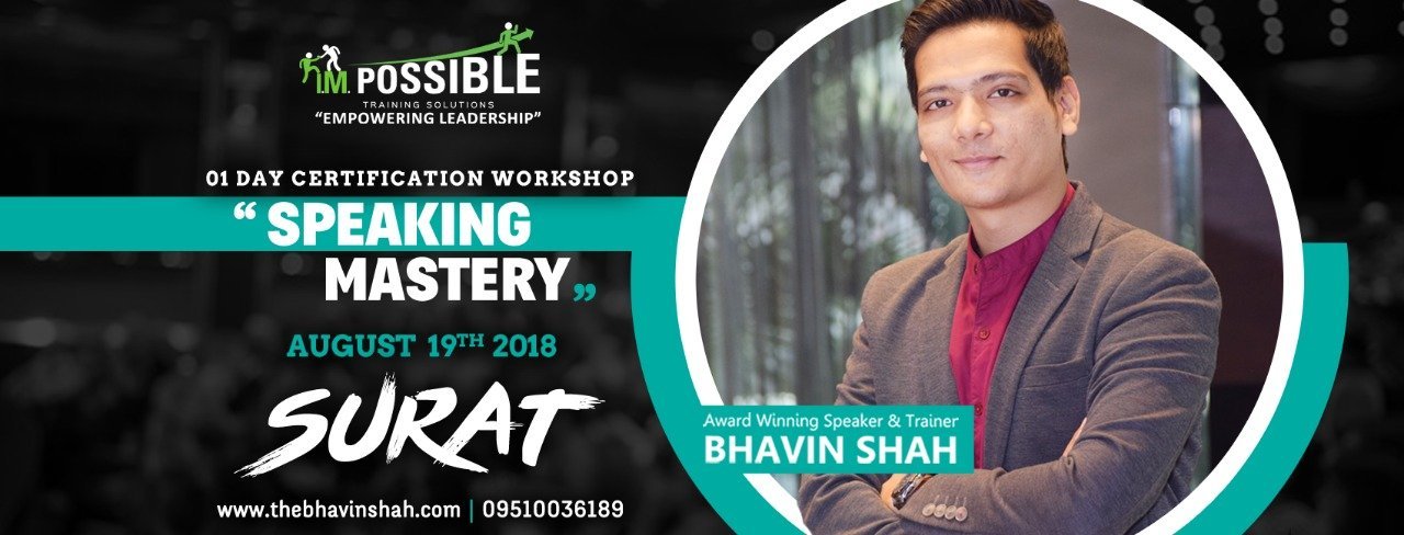 EVENTS Speaking Mastery” By Bhavin Shah – 19th August – 01 Day Certification Workshop – Surat Bhavin Shah August 3, 2018