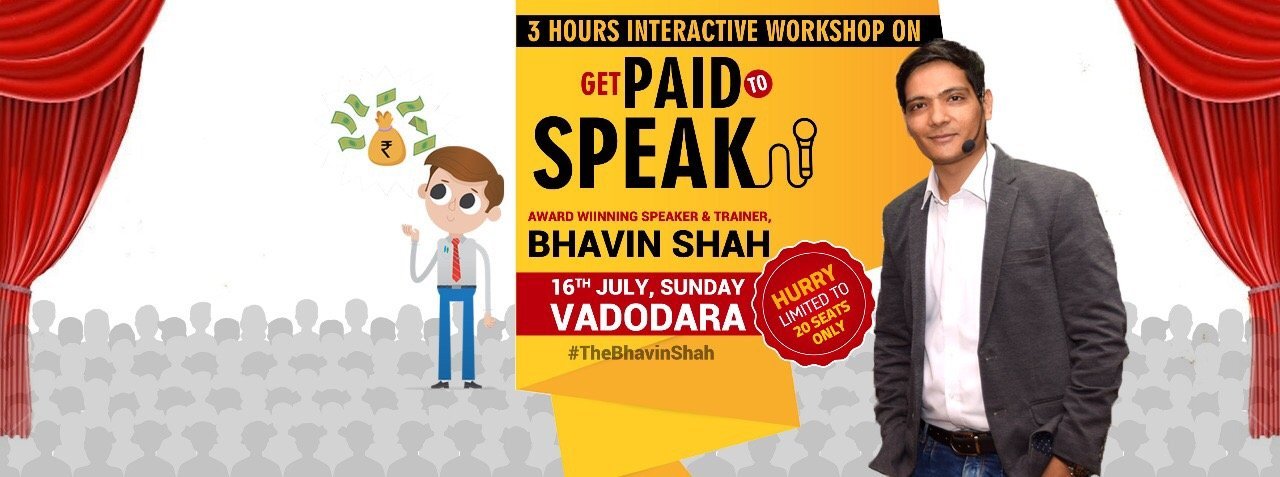 EVENTS “Get Paid To Speak” Workshop by Award Winning Speaker, Mr. Bhavin Shah (25th June, Sunday – Vadodara, Gujarat). Speak like a professional With Art of public Speaking. Bhavin Shah June 21, 2017